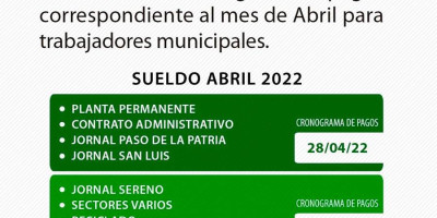 Sueldos municipales de Paso de la Patria abril 2022