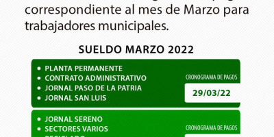 Sueldos municipales de Paso de la Patria marzo 2022