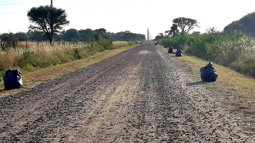En este caso la ruta de acceso a la Planta de Clasificación de Residuos Sólidos Urbanos. En todo el trayecto se realizó tareas de bolseo, en ambas márgenes del camino.