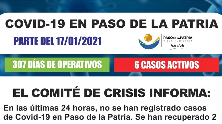 No se han registrado casos nuevos de Covid-19 en Paso de la Patria, en las últimas 24 horas. Se han recuperado 2 personas.