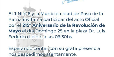 Invitación al Acto Oficial por el 215° Aniversario de la Revolución de Mayo