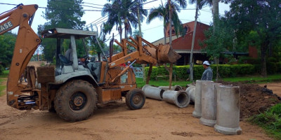Obras Públicas coloca tubos en cruces de calles de Paso de la Patria
