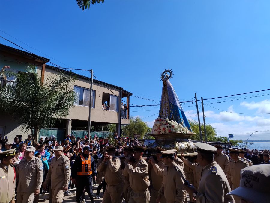 Durante la jornada, una multitud de peregrinos y devotos participó del traslado de la imagen de la Virgen María hacia el río Paraná para el encuentro con la Virgen de Caacupé, patrona de Paraguay. Los fieles colmaron la costanera de Itatí y sus alrededores para observar la procesión náutica.