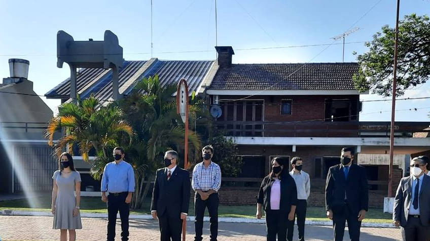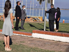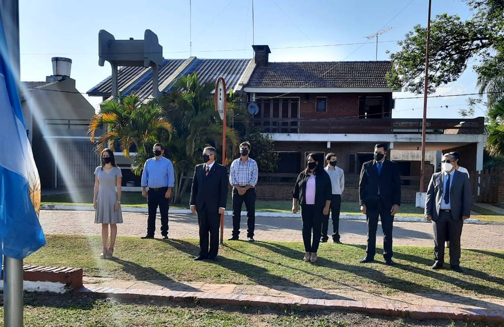 Acompañado de la Viceintendente Alba Vasque, los concejales José Alfonso, Fernando Bravo, “Bocha” Barberán, Cecilia Osnaghi, y Diego Romero; y de los secretarios de Hacienda y Finanzas, Silvana González, y de Obras y Servicios Públicos Sergio Goldschmid, el jefe comunal Guillermo Osnaghi izó el Pabellón Nacional en el Anfiteatro Pinín Palma, al conmemorarse un nuevo aniversario de la fundación de Paso de la Patria.