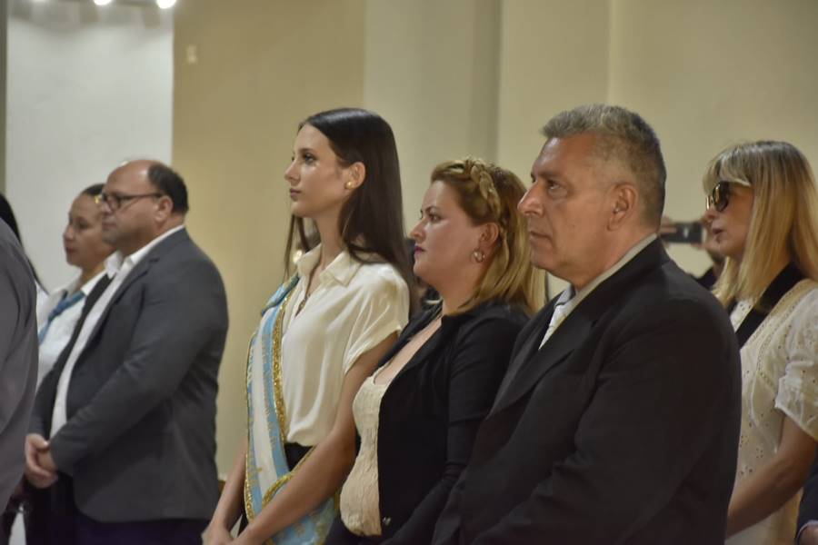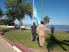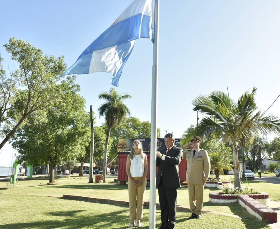A las 8, en el predio del anfiteatro Pinín Palma se realizó el izamiento del Pabellón Nacional con la presencia del intendente Guillermo Osnaghi, la viceintendente Gloria Costaguta, funcionarios municipales, representantes de las fuerzas de seguridad, docentes, vecinos y público en general.