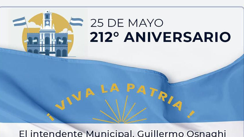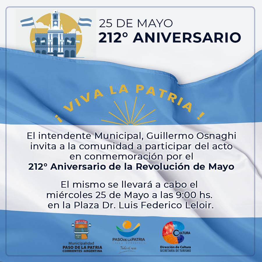 El intendente de la Municipalidad de Paso de la Patria, Guillermo Osnaghi, invita a toda la comunidad participar del acto de conmemoración de la instauración del primer gobierno patrio.
