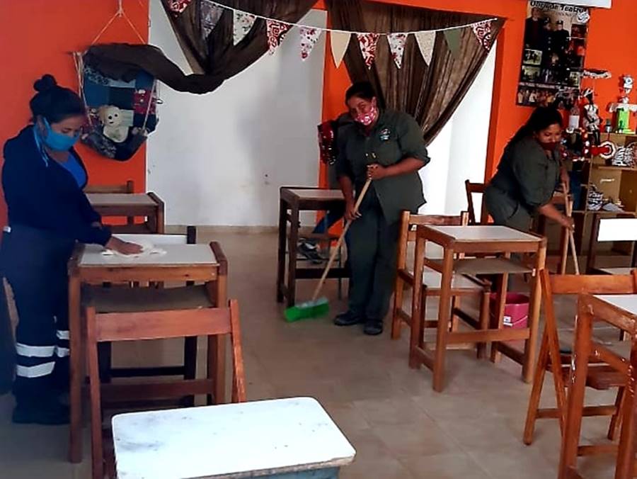 Con el apoyo del personal de limpieza de la Dirección de Obras Públicas, a cargo de Enrique Rodríguez, se avanza en la higiene y acondicionamiento del lugar, en donde las clases se realizarán siguiendo estrictas medidas de prevención de contagios de Covid-19, entre las que se cuentan el distanciamiento social, el uso de tapabocas y la higiene de manos.
