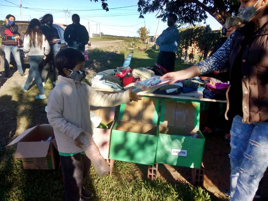 El objetivo de la visita fue hacer entrega ropa de abrigo para niñas y niños, también para adultos de ambos sexos, medias, indumentaria escolar, útiles escolares de primaria y secundaria, juguetes.