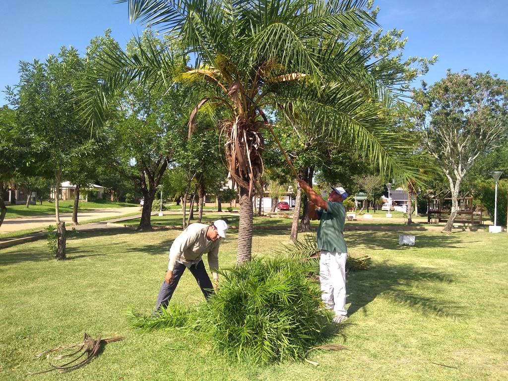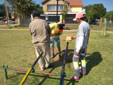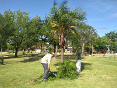 En Plaza Federico Leloir realizan mantenimiento de la parquización, se retiran partes de juegos para chicos al efecto de reparación y soldaduras.