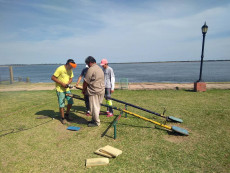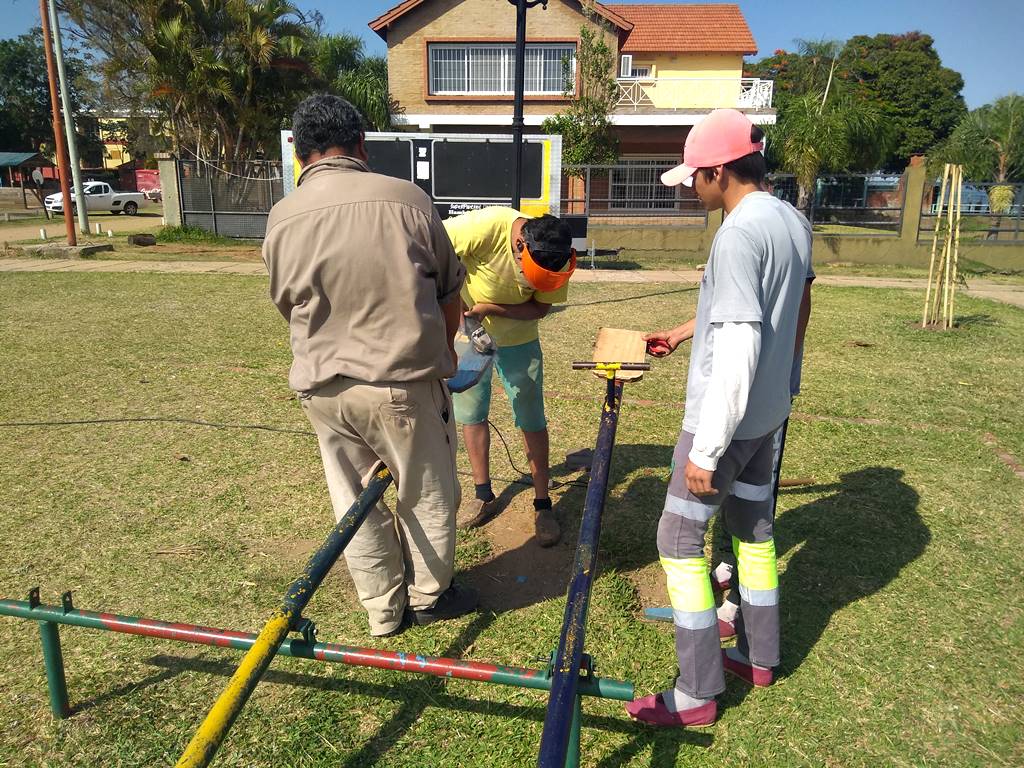 En plazoleta Punta Mitre, los trabajos que se realizan son de reparación y soldadura de juegos para chicos mejorando los espacios públicos de recreación.