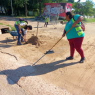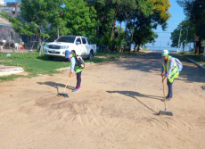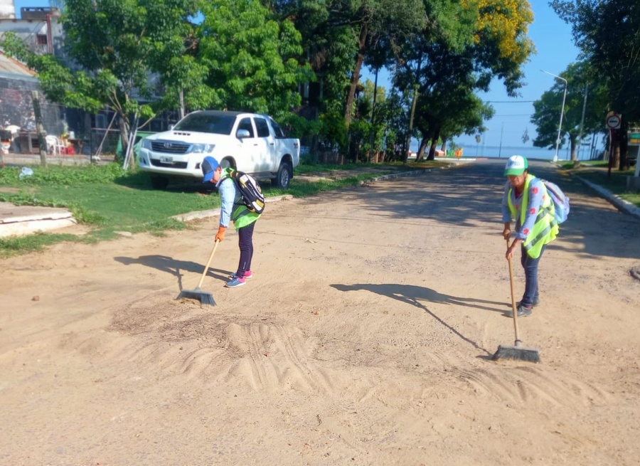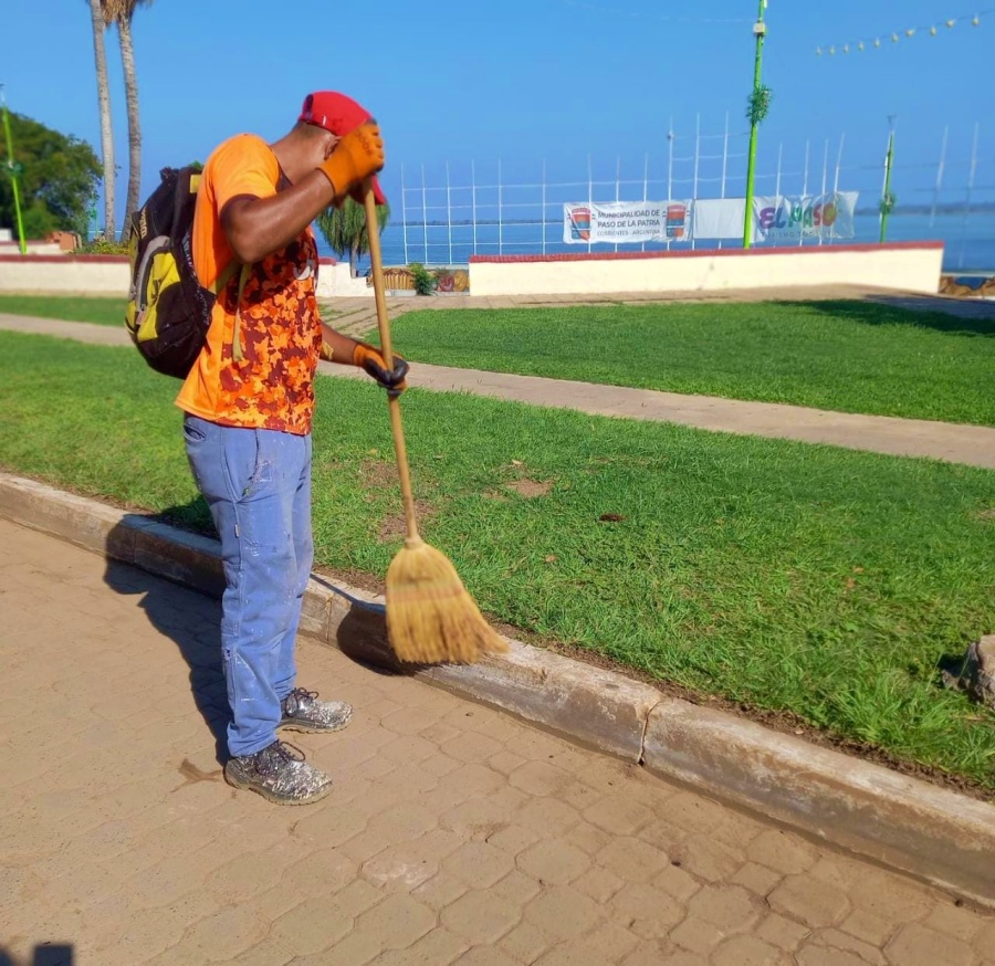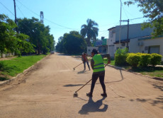 Personal de Obras y Servicios Públicos de la Municipalidad de Paso de la Patria se encuentra abocado a la tarea de barrido y limpieza de calles cotidianamente, también realiza limpieza y pintura de cordón de vereda.