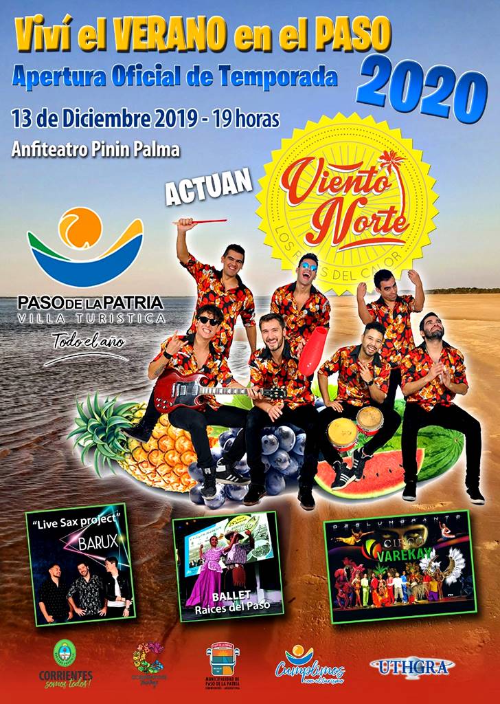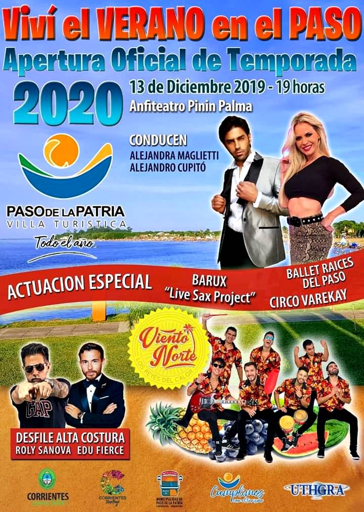 Este viernes 13/12/19, en el escenario del anfiteatro Pinín Palma con espectáculo artístico musical, desfile de modas. Una gran fiesta para la Apertura Oficial Temporada Verano 2020 Paso de la Patria.