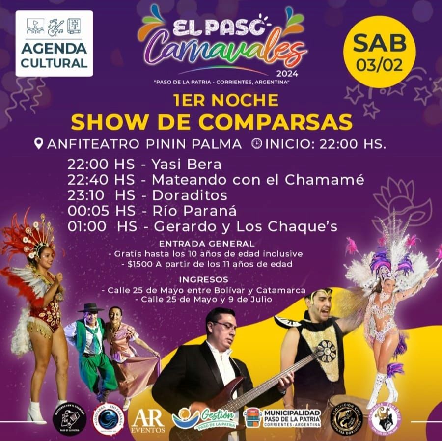La entrada general tendrá un valor de $1500 (mil quinientos pesos) y estará disponible para personas a partir de los 11 años de edad. Es importante destacar que este evento cuenta con el apoyo incondicional de la Municipalidad de Paso de la Patria y la organización de las Comisiones de Comparsas locales, quienes se han esforzado para hacer de esta fiesta una experiencia única.