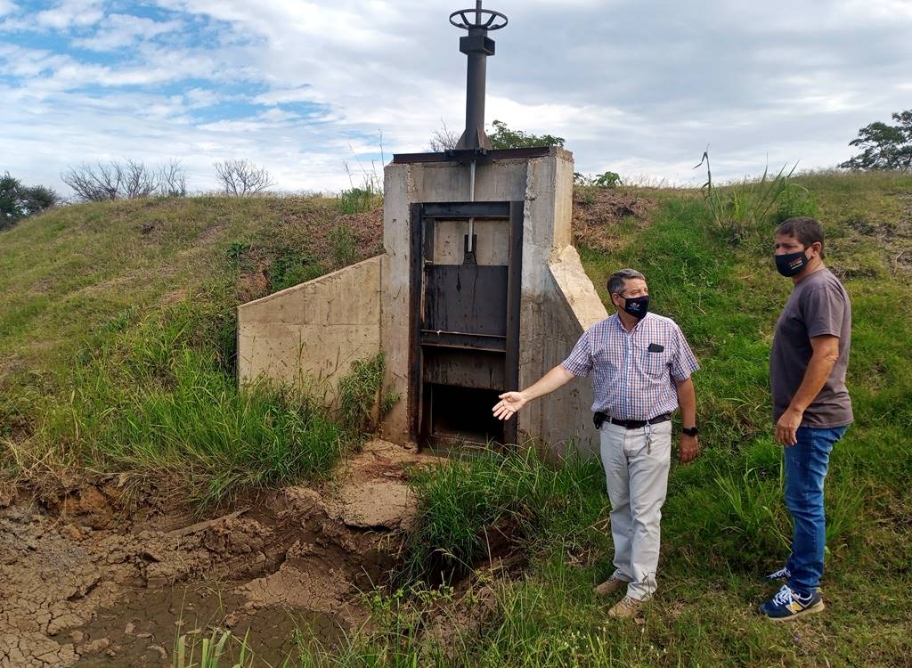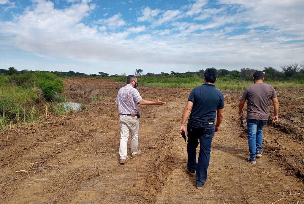 Este sábado 20/02/21, el intendente Guillermo Osnaghi comprueba el desarrollo del trabajo de limpieza del Arroyo Huajó, acompañado por el secretario de Obras y Servicios Públicas Sergio Goldschmid y el concejal Javier Barberán.