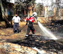 Un equipo de bomberos voluntarios de Paso de la Patria partió hacia el barrio Parque de los Pescadores, pasado medio día de este lunes 12 de octubre, donde el fuego arrasó dos manzanas de terrenos baldíos, las proximidades de tres casas y el fondo de una cuarta residencia, donde se perdió completamente el sector de pileta.
