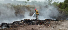 Bomberos Voluntarios y personal municipal de Paso de la Patria apagaron el incendio que se produjo a metros de la planta de clasificación de residuos.
