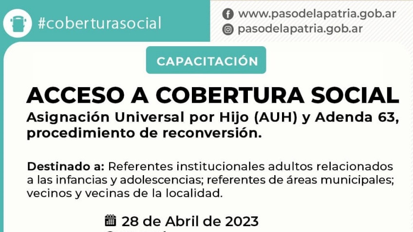 La Municipalidad de Paso de la Patria brinda capacitación sobre Acceso a Cobertura Social, esto es Asignación Universal por Hijo (AUH) a Adenda 63, procedimiento de reconversión.