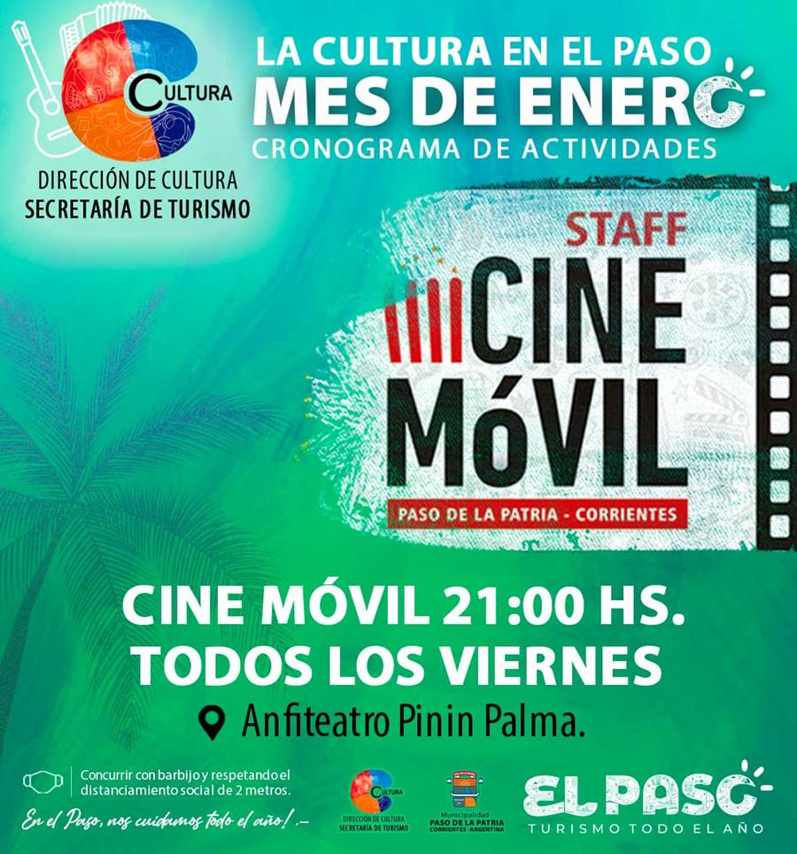 El Departamento de Cultura de la Municipalidad de Paso de la Patria lleva adelante las proyecciones de películas con pantalla especialmente montada en el anfiteatro Pinín Palma, los viernes, desde las 21 horas, para toda la familia.