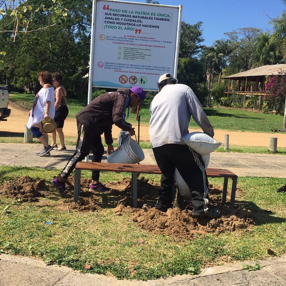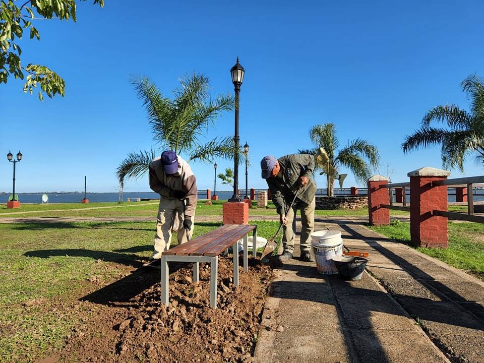 En la actualidad se está colocando bancos (asientos) en la vereda de todo el trayecto de la costanera San Martín en la zona de playa Bahía Punta Mitre.