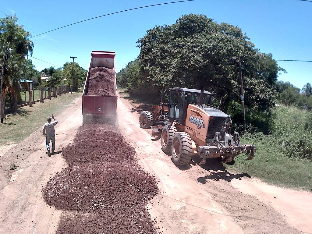 La Municipalidad de Paso de la Patria sigue avanzando con los trabajos de colocación de ripio en diferentes sectores de la localidad.