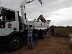 Colocación de tubos en cruces de calles de Paso de la Patria