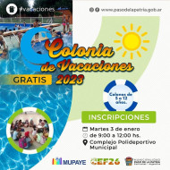La Municipalidad de Paso de la Patria, el Centro de Educación Física N° 26 y la Mutual del Personal de Agua y Energía (MUPAYE), arrancan con la Colonia de Vacaciones 2023.