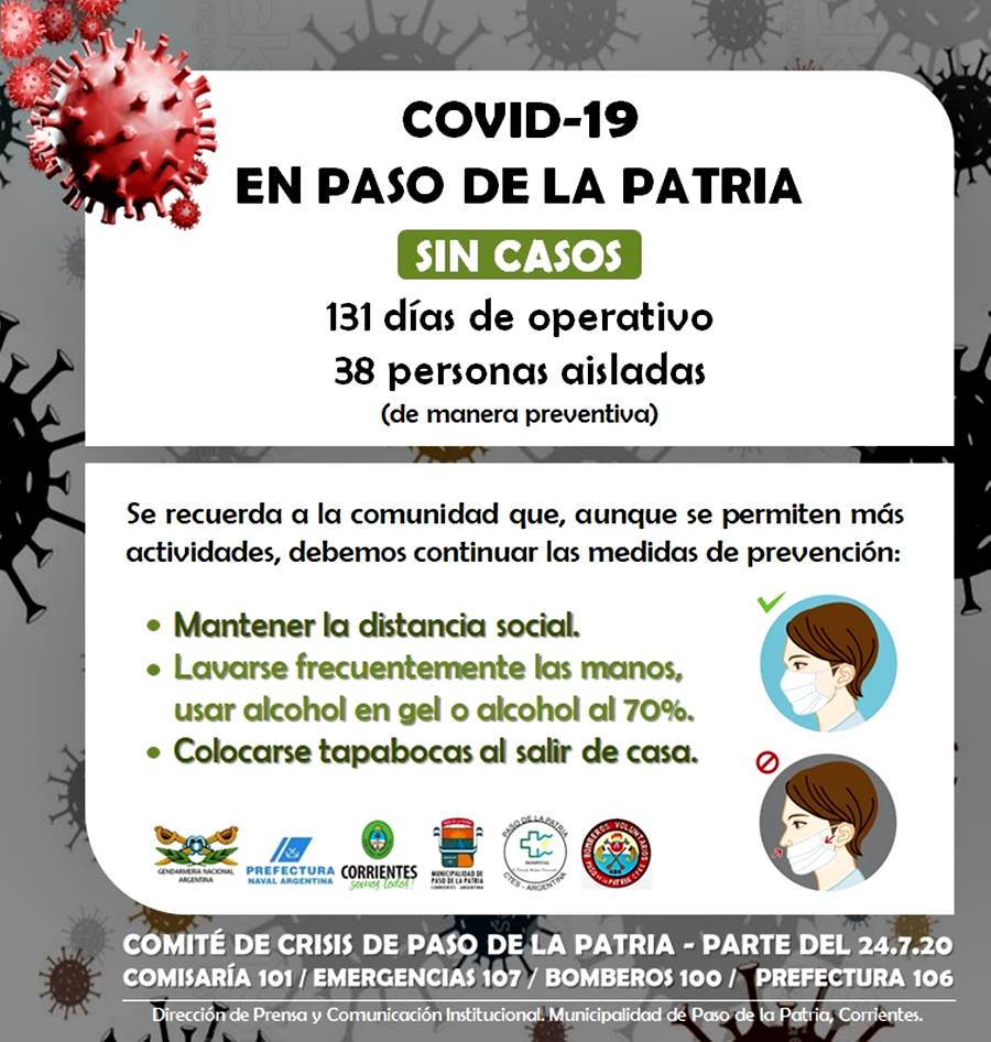 Covid-19. Parte Oficial del Comité de Crisis de Paso de la Patria.