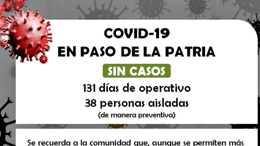 No hay casos de Covid-19 en Paso de la Patria. Transcurrieron 131 días desde el inicio del operativo.