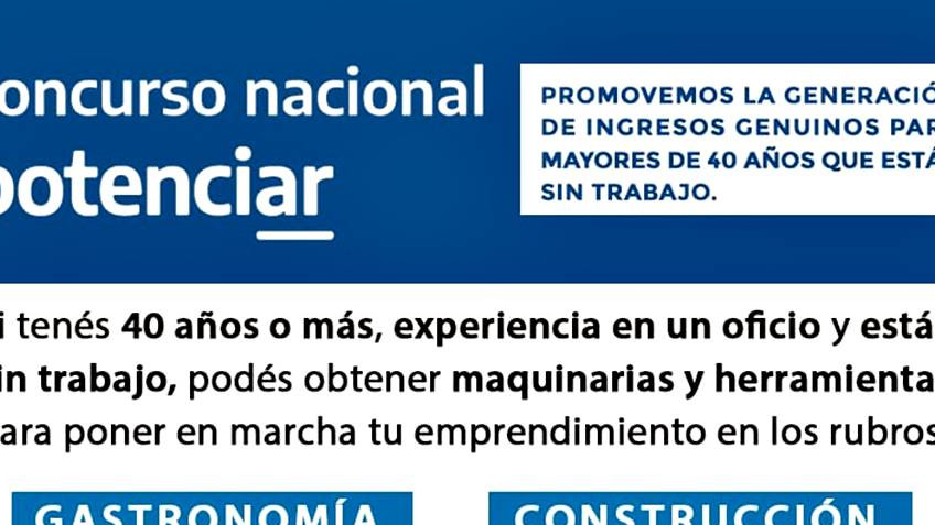 Si tenés 40 años o más, experiencia en un oficio y estás sin trabajo, podés obtener maquinarias y herramientas para poner en marcha tu emprendimiento en los rubros construcción, carpintería, herrería, gomería, gastronomía, textil, calzado y jardinería.