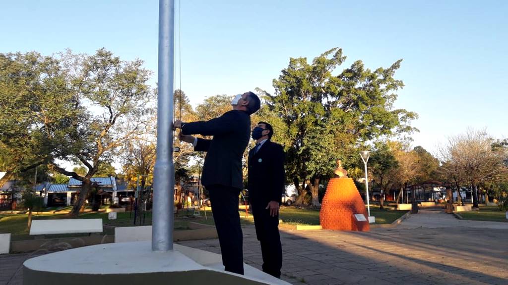 Fue en Plaza "Dr. Luis F. Leloir", esta mañana a las 8, cuando se procedió al Izamiento de la Bandera y la Ofrenda Floral, en honor a los patriotas que arriesgaron sus vidas en pos de la Libertad y el nacimiento de nuestra Nación.