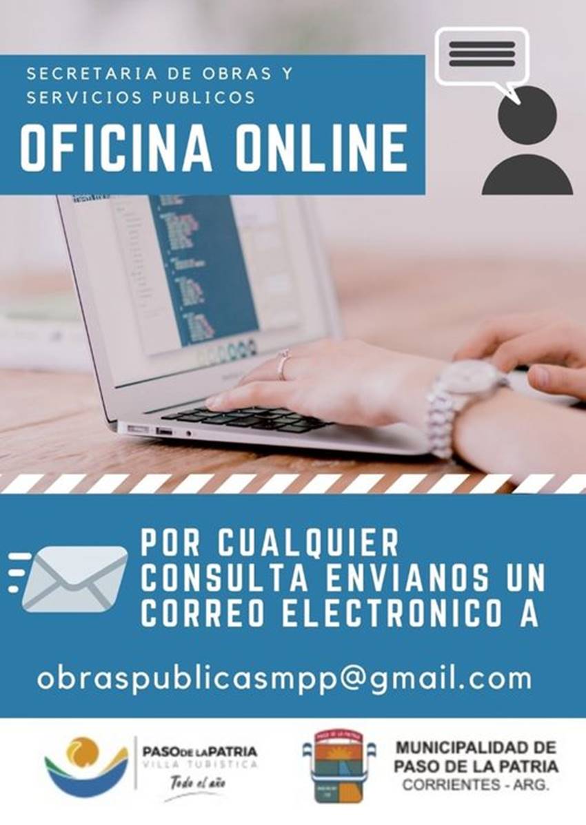 Está disponible para todos los contribuyentes interesados (por toda consulta) un correo electrónico para establecer contacto con el área de Obras y Servicios Públicos de la Municipalidad de Paso de la Patria: obraspublicas.mpp@gmail.com