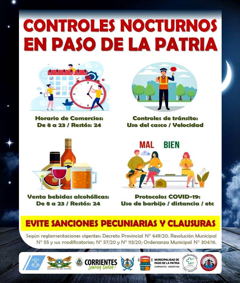 Covid-19: Continúan los controles nocturnos para el comercio y la seguridad en Paso de la Patria.