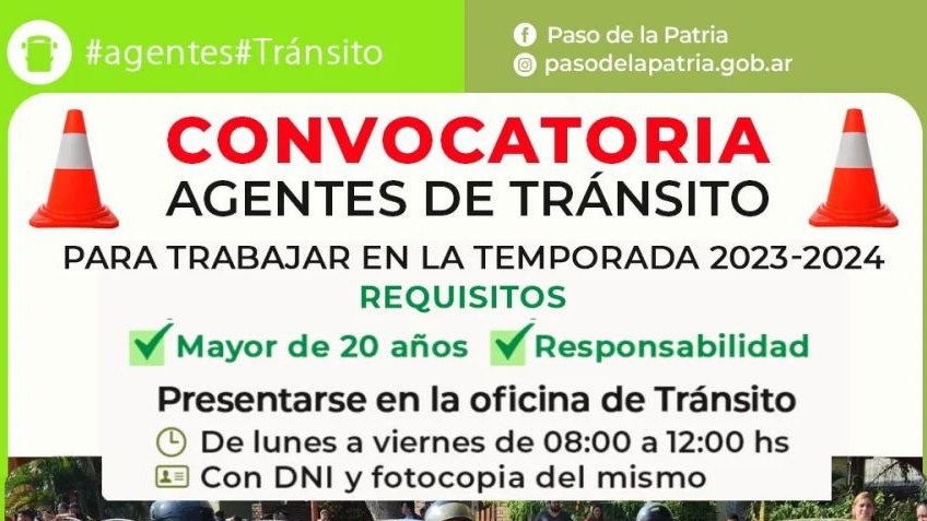 ¡Unite al equipo de Tránsito y formá parte de la Municipalidad de Paso de la Patria durante la temporada de verano 2023/2024!