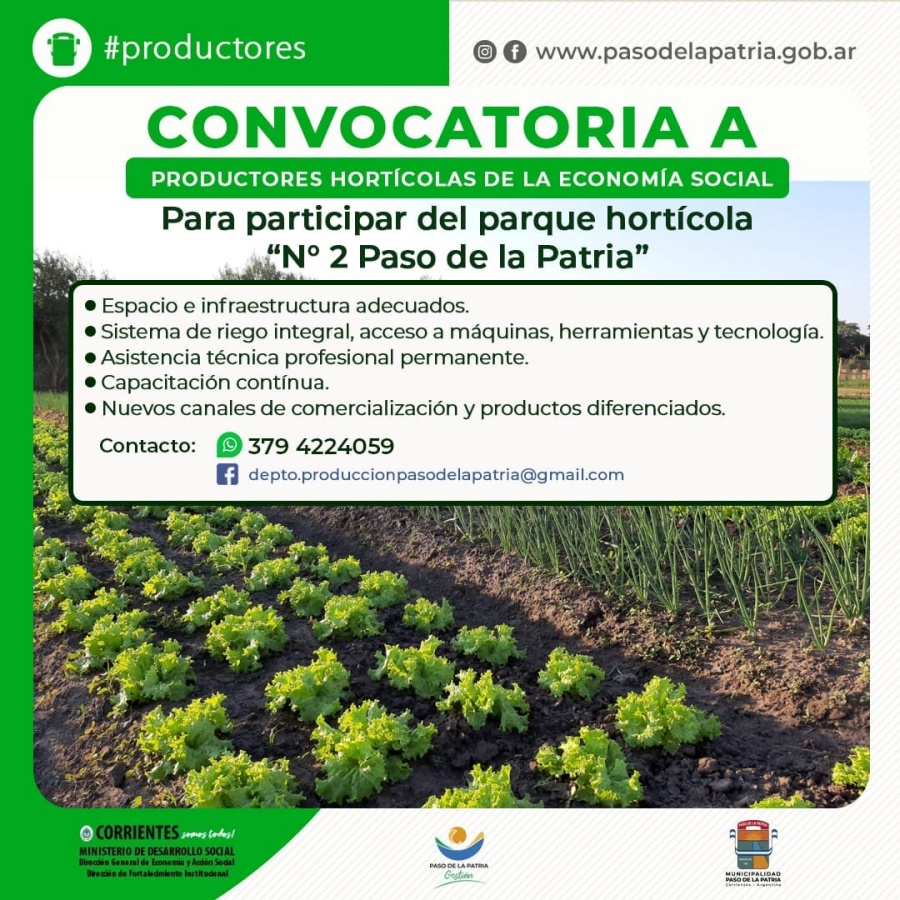 Contacto: Departamento de Producción Municipal, 25 de mayo esq. Mendoza o por WhatsApp al número 379 422 4059.