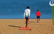 El equipo de guardavidas de las playas de Paso de la Patria está llevando a cabo importantes tareas de rastrillado en la playa.