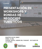 El próximo martes 28 de junio, se va a realizar un curso de capacitación “Presentación en Workshops y Rondas de Negocios Turísticos”.