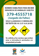 El Juzgado de Faltas de la Municipalidad de Paso de la Patria informa a la comunidad sobre la habilitación de un número telefónico (celular) para denuncias de animales sueltos en la vía pública.