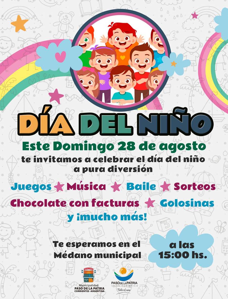 El Departamento de Cultura de la Municipalidad de Paso de la Patria, a cargo del Profesor Ramiro García, organiza para el domingo 28 de agosto un gran evento para celebrar el Día del Niño.
