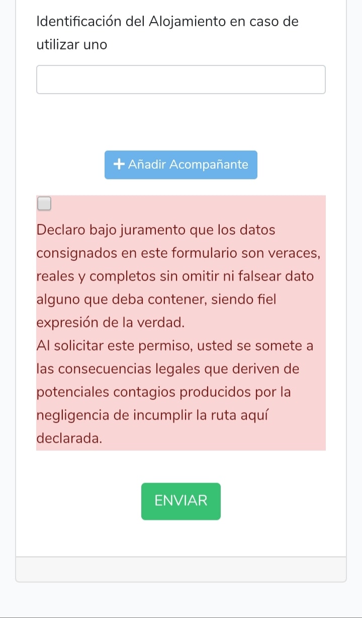 Serán rechazadas las solicitudes con integrantes que tengan un permiso previo vigente de ingreso a la provincia o hayan ingresado hace menos de 14 días.
