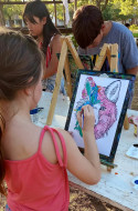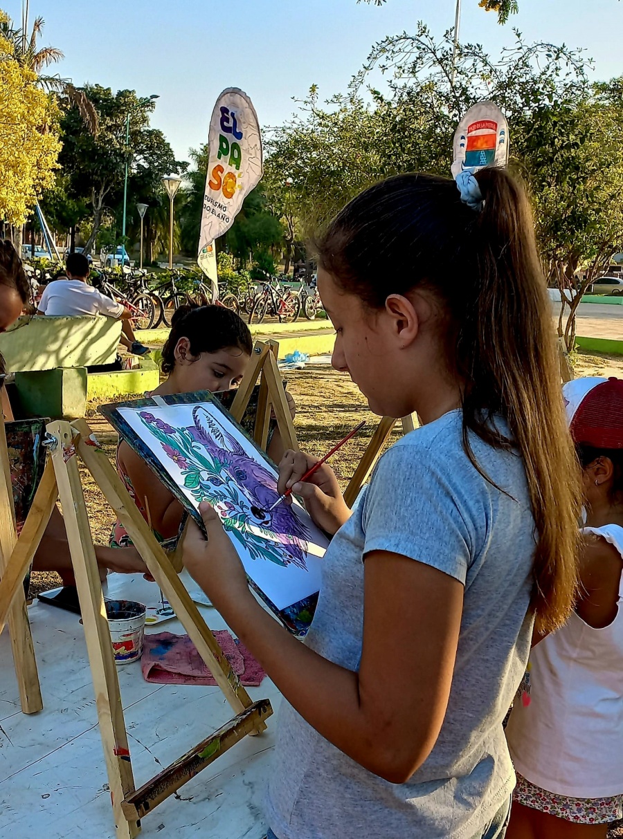 La profesora Laura Ovelar del taller de dibujo y pintura “Dibujando al Paso” llevó adelante un encuentro artístico con la participación de chicos entusiasmados por expresarse artísticamente, aprender y disfrutarlo.