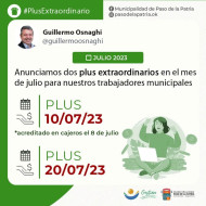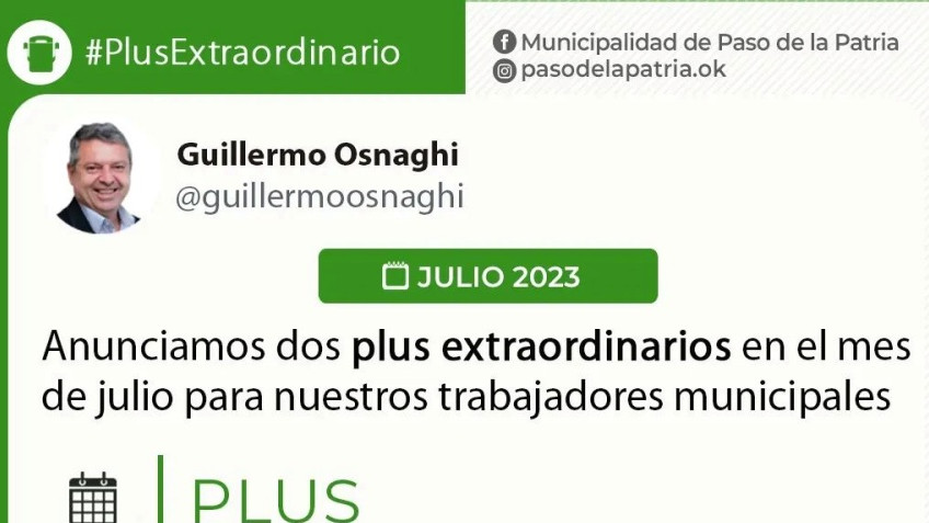 La Municipalidad de Paso de la Patria, bajo las específicas instrucciones del intendente Guillermo Osnaghi, se complace en anunciar la implementación de un plus extraordinario para el personal municipal.