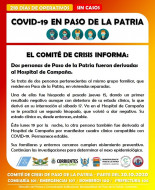 El Comité de Crisis de Paso de la Patria informa que dos personas de la localidad fueron derivadas al Hospital de Campaña.