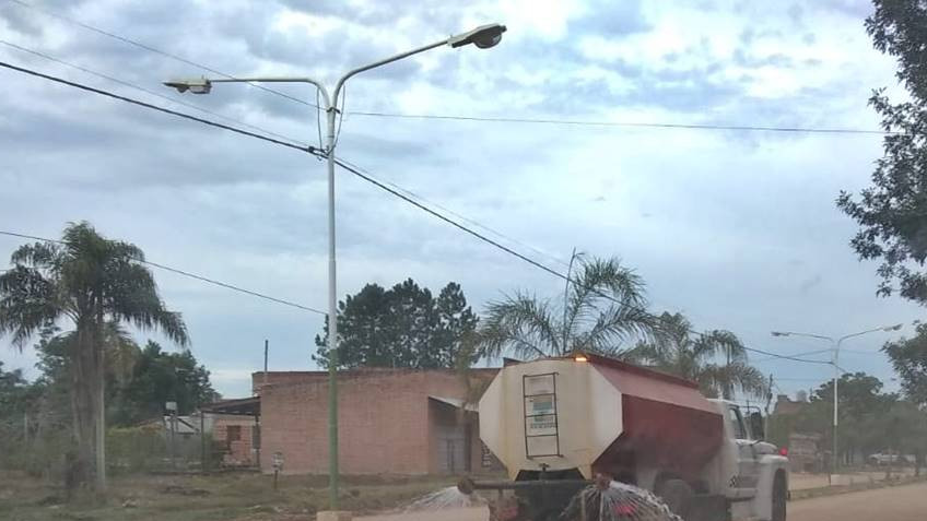El Camión Regador Municipal recorre calles de Paso de la Patria