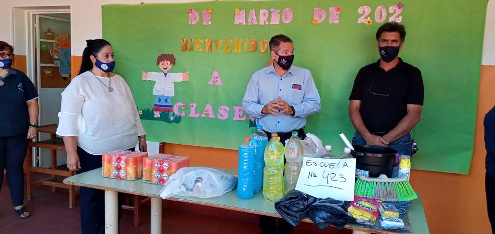 Osnaghi visitó las comunidades educativas de la Escuela N° 827 “Marcos Forastier” de El Rincón, donde se produjo el acto de colación de estudiantes primarios egresados 2020, la Escuela N° 423 “Supervisora Adela Cano de Lotero” (primaria) y la Escuela Normal Superior “Primer Teniente Miguel Ángel Giménez” (secundaria) durante la mañana de este viernes. En los establecimientos mencionados, el intendente realizó intercambio de conceptos con el personal administrativo, alumnos y tutores.
