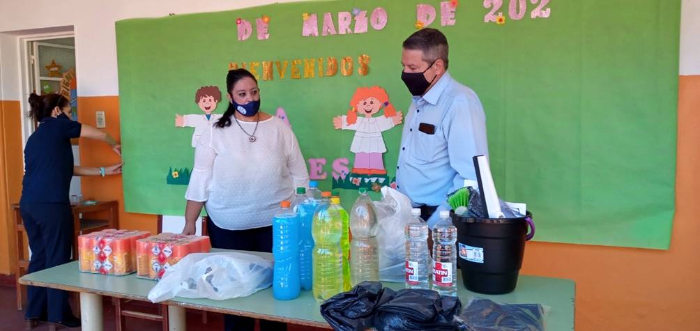 El jefe comunal de Paso de la Patria respondió afirmativamente a las inquietudes de los docentes y recorrió distintas instituciones educativas de la localidad para mantener un diálogo cercano con los directivos y hacer entrega de elementos de limpieza y planificar acciones de desinfección, en el marco de la campaña de prevención del Covid-19 y Dengue.
