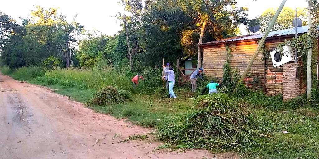 Equipos de Obras Públicas de la Municipalidad de Paso de la Patria realizaron esta mañana (viernes, 22 de enero) distintas tareas en barrios de la localidad; entre ellas: limpieza, corte de pasto y mantenimiento en la barrera, en zanjas del barrio Frutilla y en distintos sectores del edificio municipal, donde además se hizo reposición de pintura en uno de los paredones perimetrales.