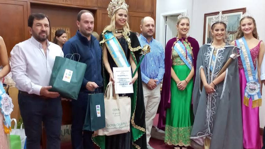 El Intendente de la Ciudad de Goya, Mariano Hormaechea, realizó el intercambio de obsequios con las reinas que fueron invitadas a participar de la Fiesta Nacional del Surubí.