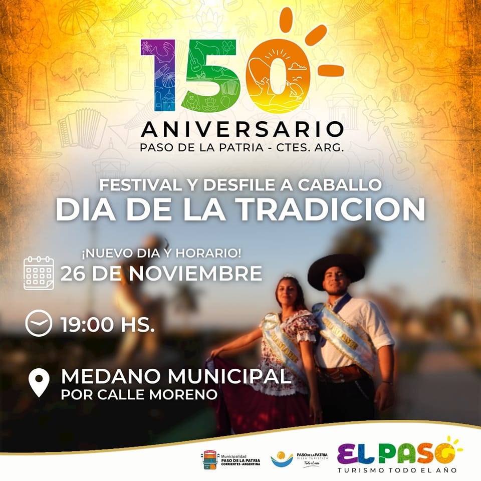 La Municipalidad de Paso de la Patria programó un gran festival por el Día de la Tradición el pasado 10 de noviembre que por razones climáticas no pudo realizarse.