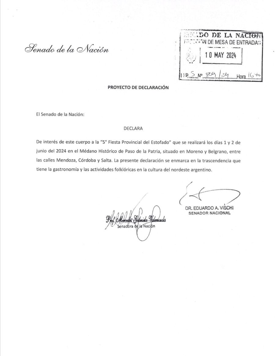 Fiesta del Estofado declarada de Interés por el Senado de la Nación