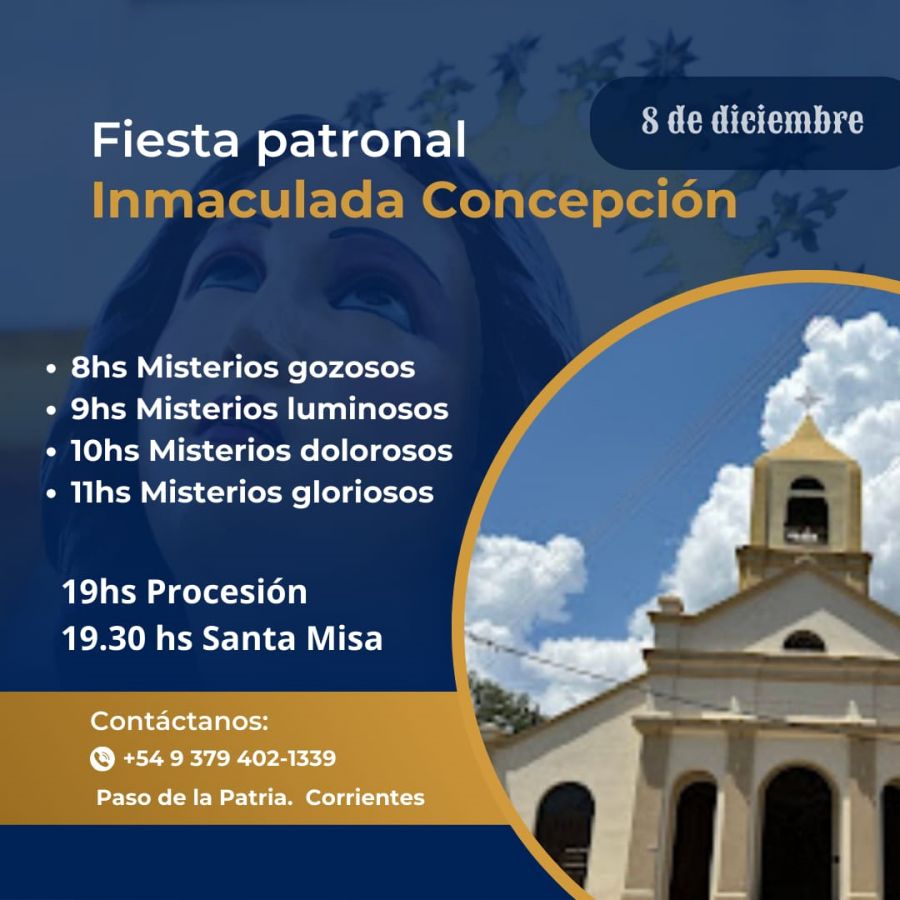 Como es tradición en Paso de la Patria, el 8 de diciembre se celebra la fiesta patronal en honor a la Inmaculada Concepción. Esta festividad reúne a la comunidad local y a visitantes de diversas partes, convirtiéndose en un momento de unión y celebración.